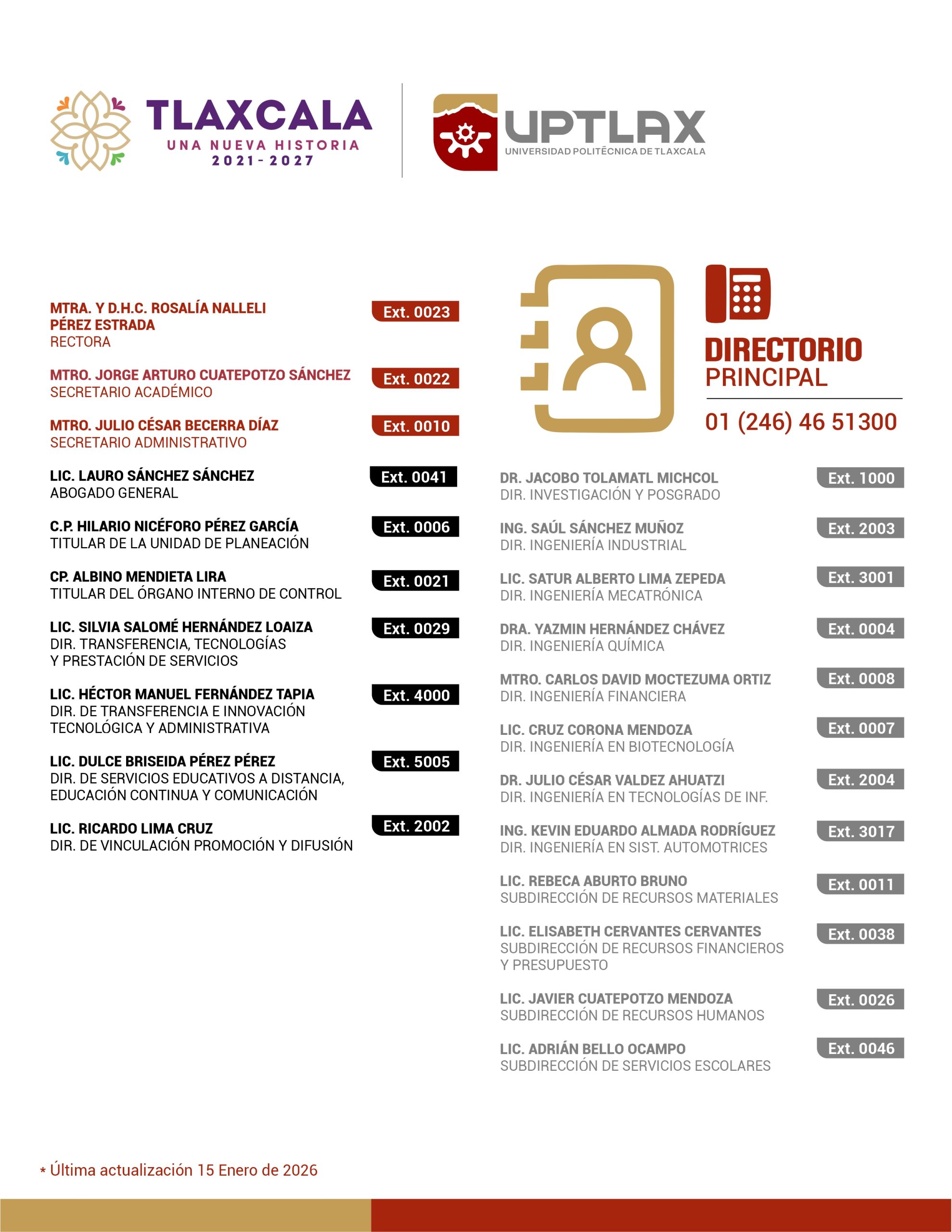 Dirección: Avenida Universidad Politécnica de Tlaxcala, No.1 San Pedro Xalcatzinco, 90180, Tepeyanco Tlaxcala.