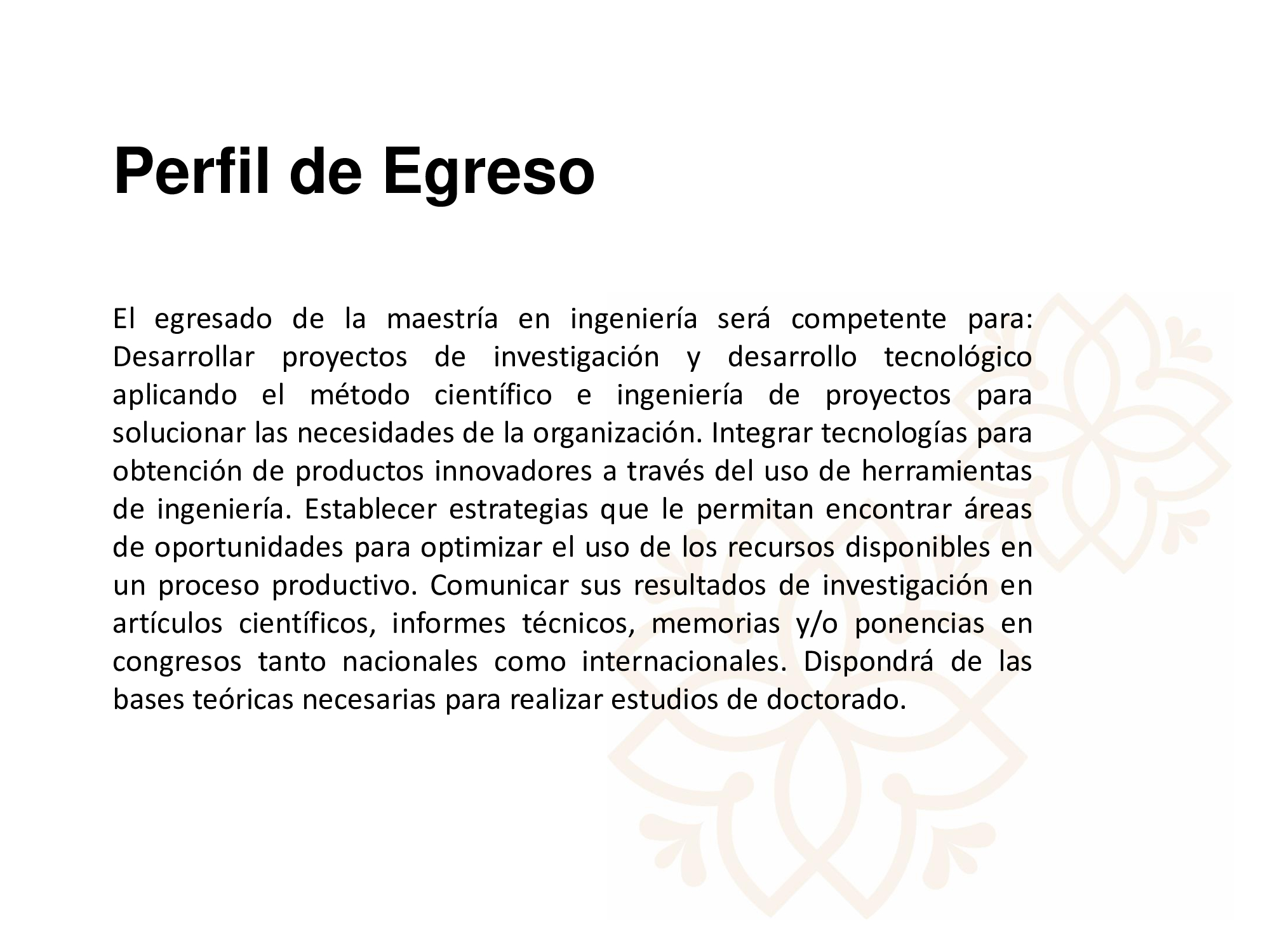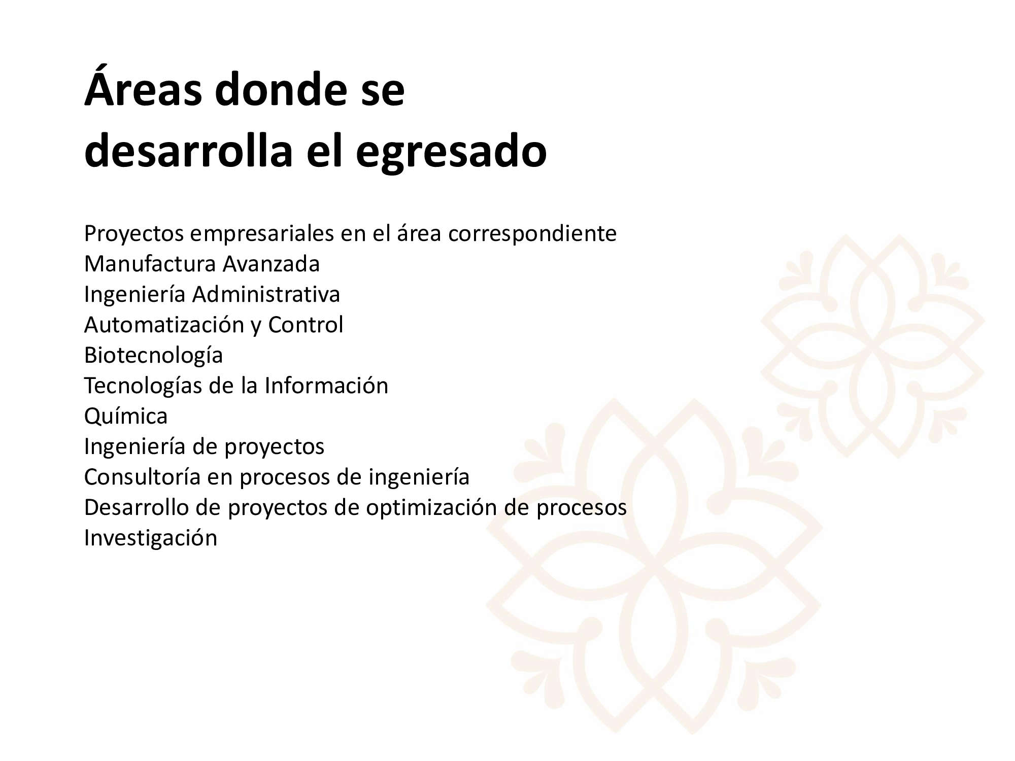 Adquirir conocimientos, actitudes, habilidades y destrezas para realizar en las áreas de ingeniería, manufactura y administración de servicios