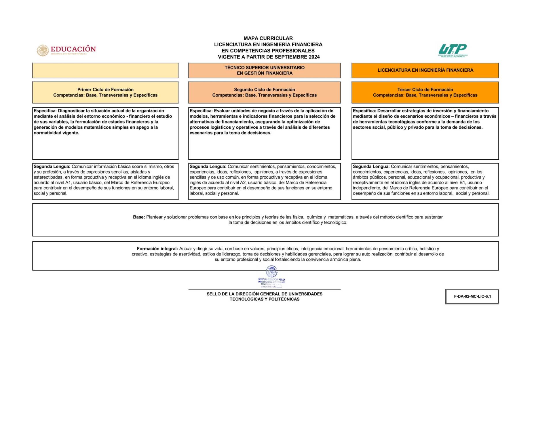 | Objetivo de la Carrera | Formar profesionales con capacidad de investigar, analizar, planear, dirigir y tomar decisiones óptimas para generar valor en las unidades económicas, mediante el conocimiento y aplicación de los procesos financieros del sector social, público y privado, partiendo de las premisas que enfaticen las variables estratégicas de las ciencias económico-financieras |